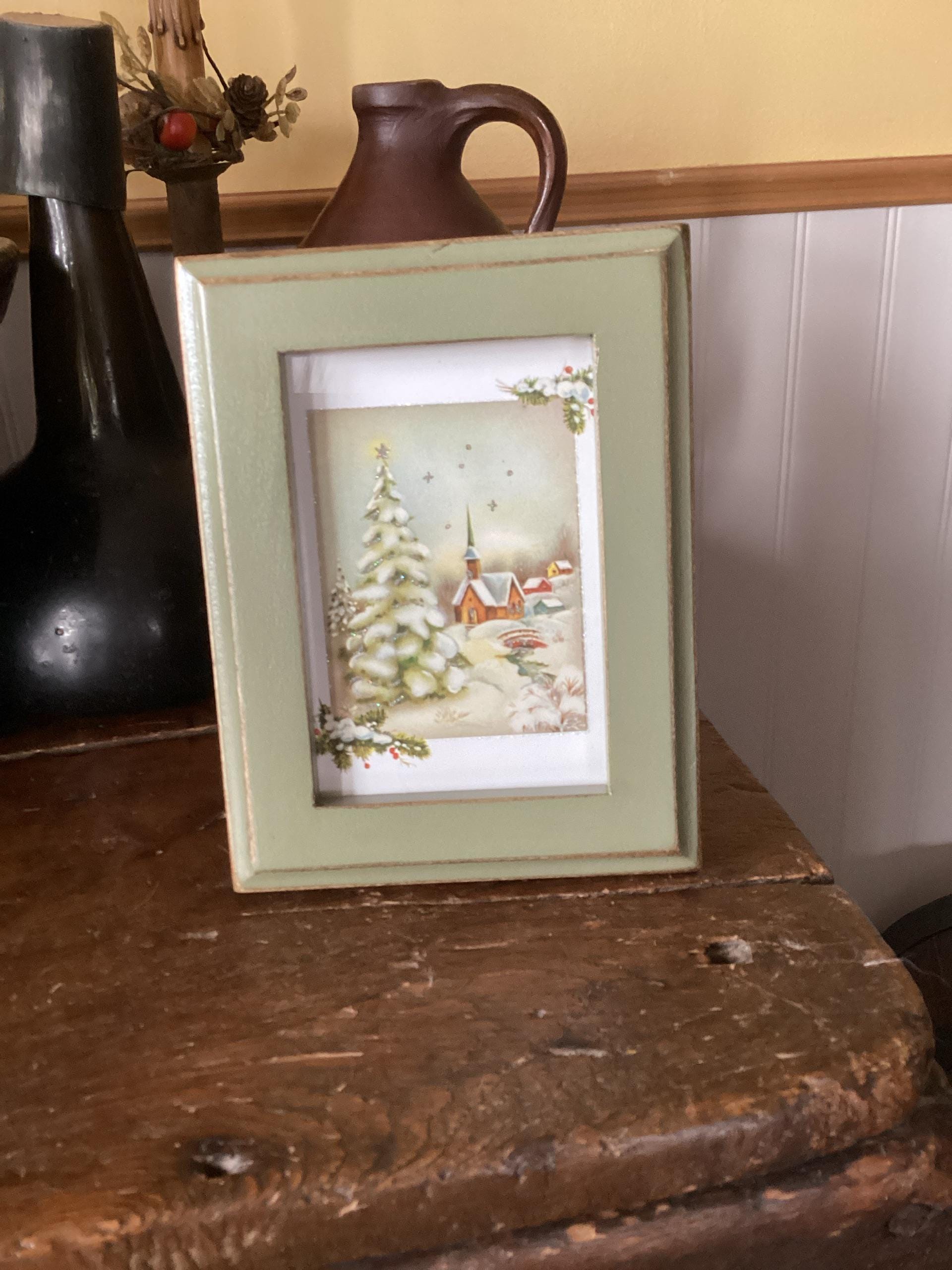 Handcrafted, 1" wide picture frame profile with routered edges built from solid poplar hardwood with VINTAGE OLD GREEN finish It works great as a wedding gift - or frame tickets, postcards, art, etc.