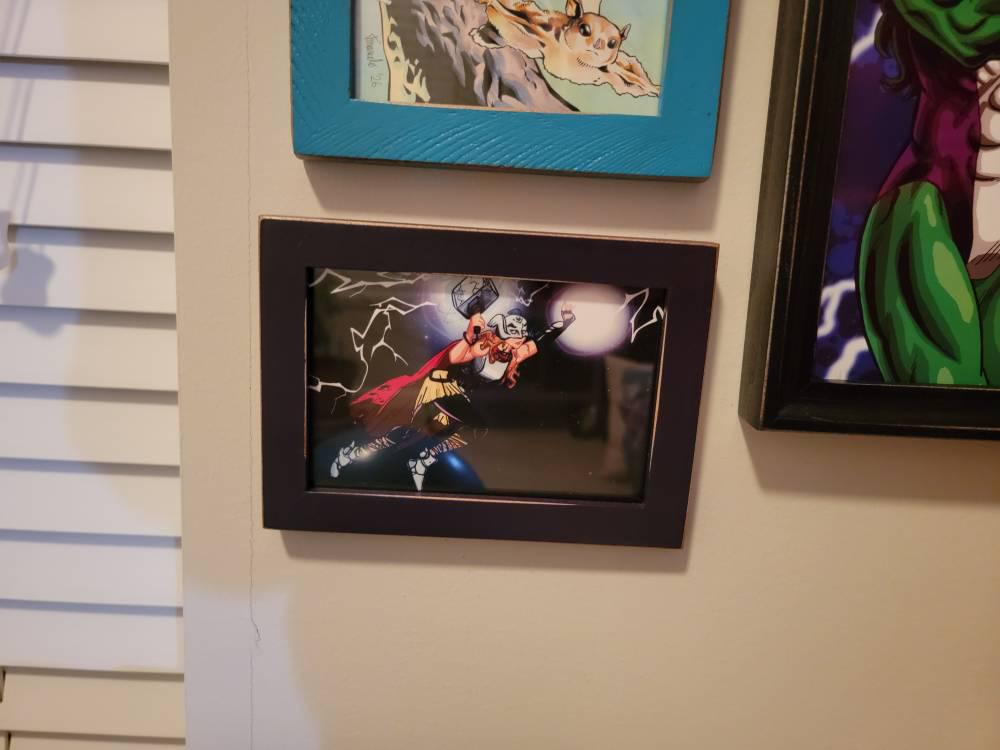 This is a handcrafted picture frame in our slim Peewee style. The Peewee is intentionally spartan, showing off your art or photograph with a slim line of color.