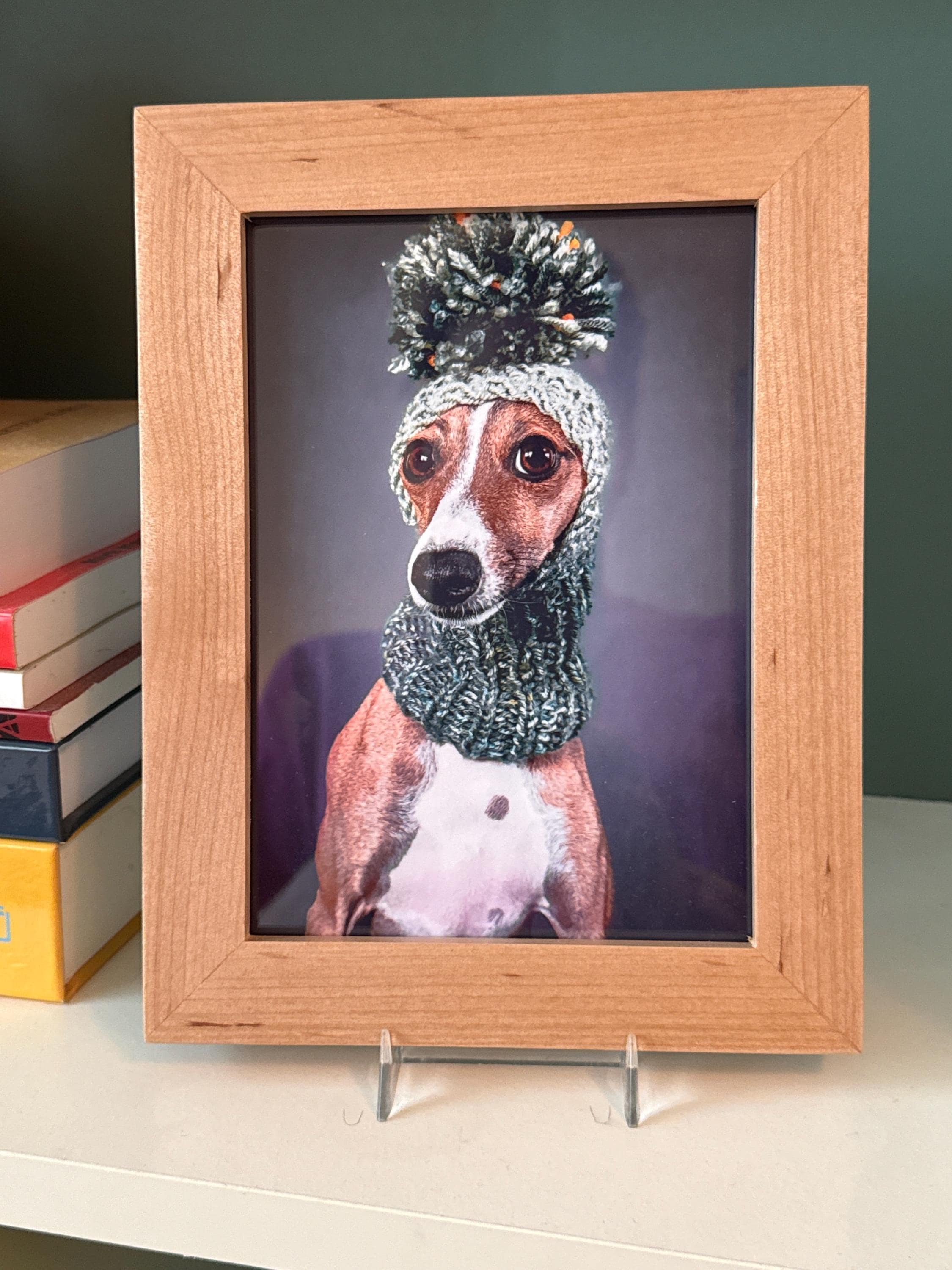 -Sizes 8x10” and smaller automatically come with a wooden dowel that fits into the back of the frame to allow it to be free-standing. Dowels can be added to larger sizes upon request
